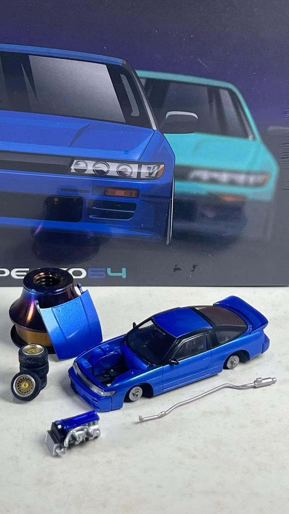 Peako 1:64 Nissan Sileighty RPS13 S13 with Opening Hood Blue