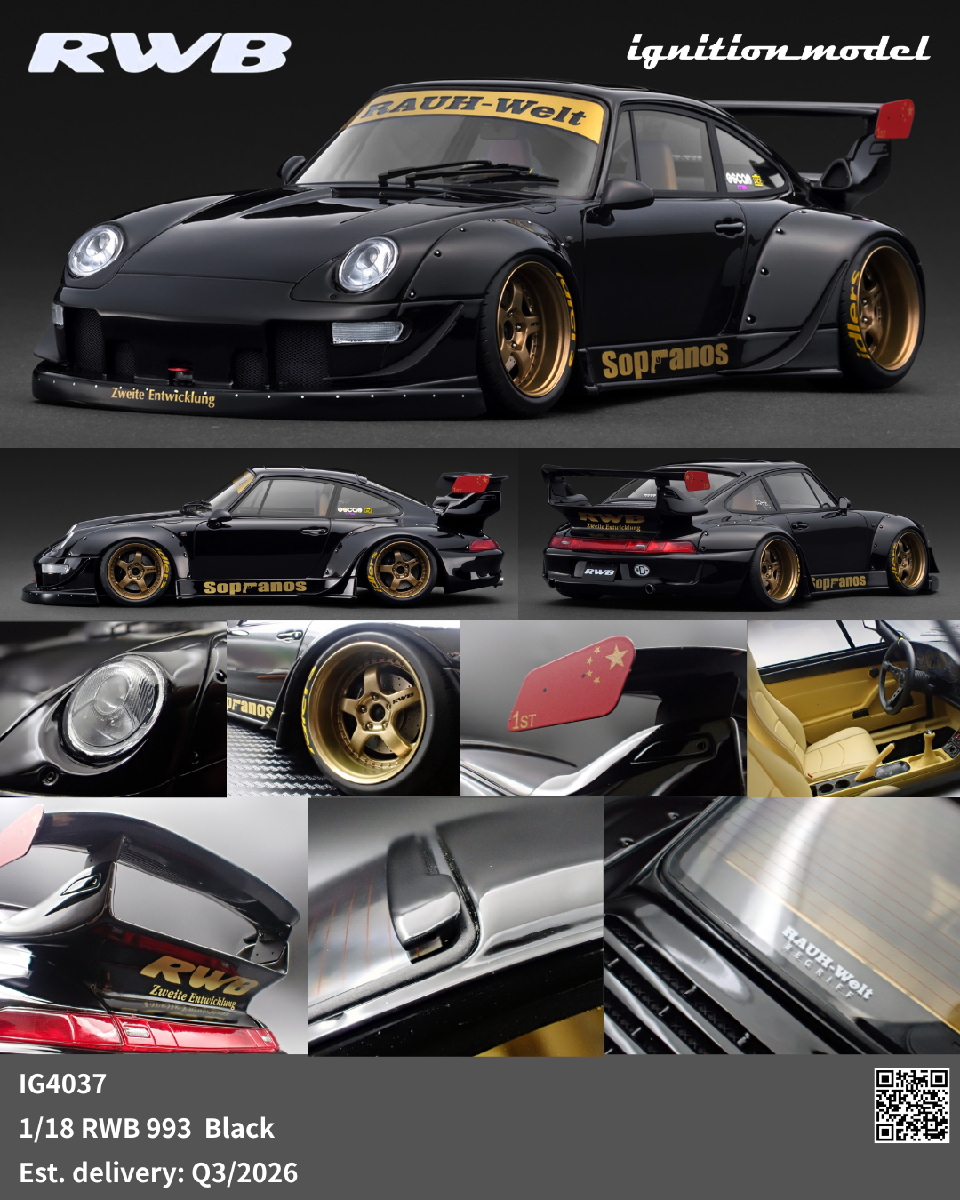 [Preorder] Ignition Model 1:18 Porsche RWB 993 Black IG4037