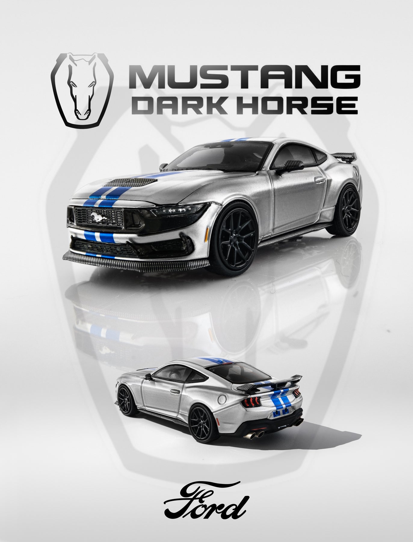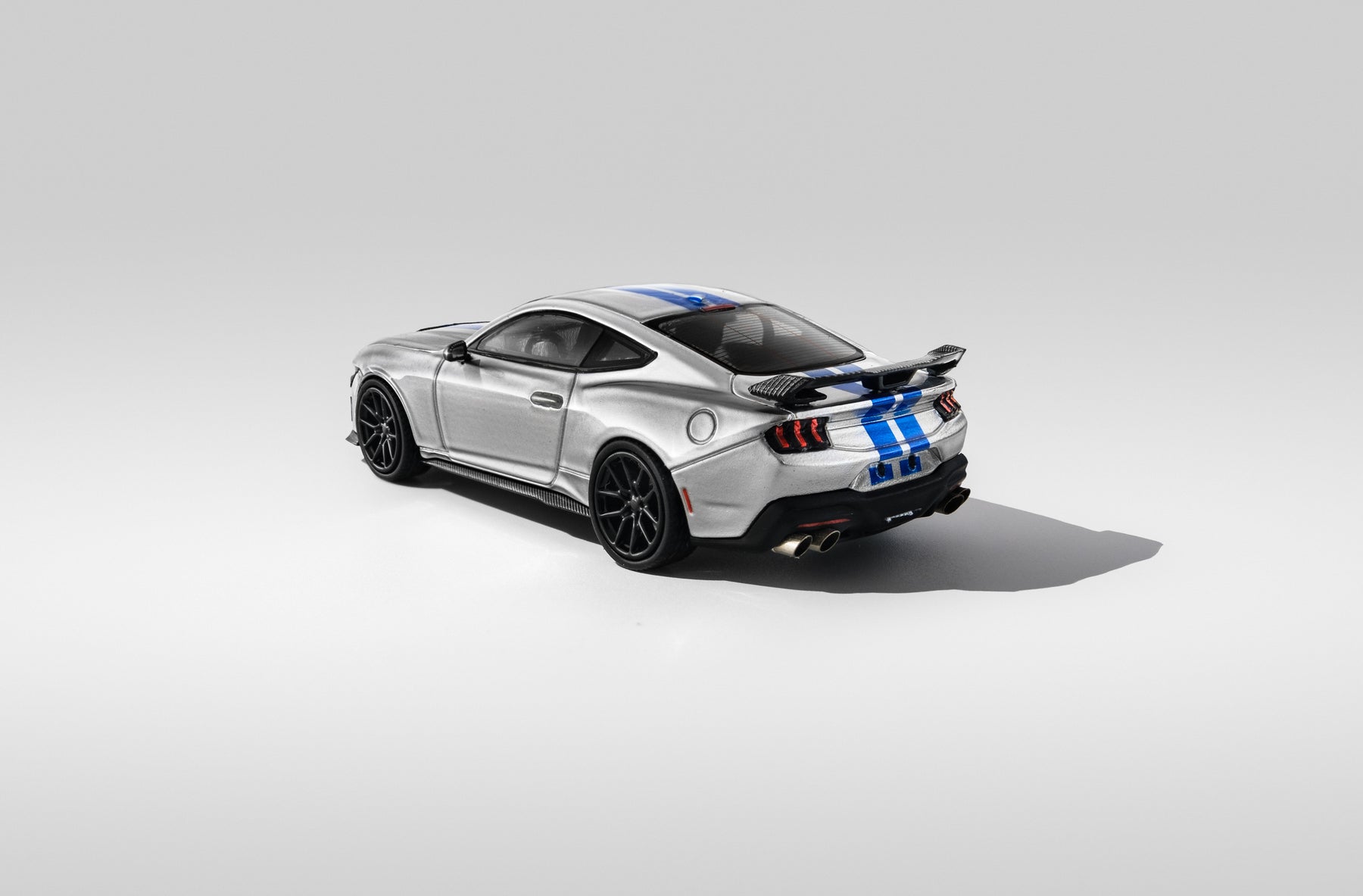DCM x FUNBOU Model 1:64 Ford Mustang Dark Horse (S650) Silver Blue Stripes