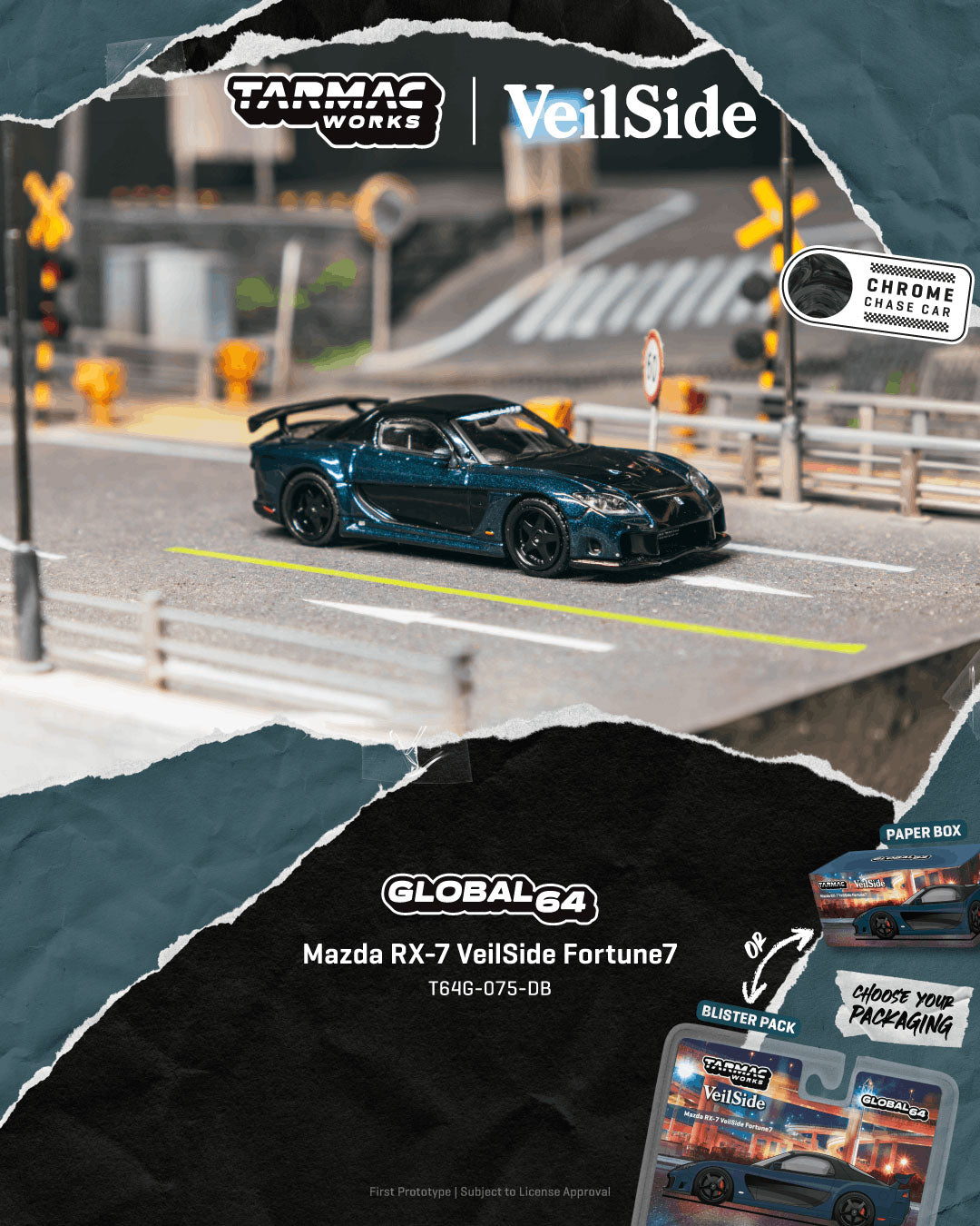 Tarmac Works 1:64 Mazda RX-7 VeilSide Fortune7 Dark Blue / Black T64G-075-DB