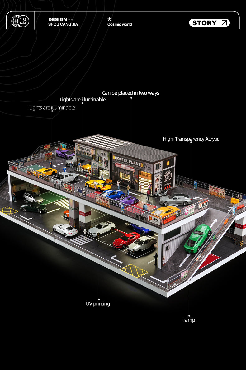 [Preorder] SHOU CANG JIA 1:64 Double-Storey Ramp-Access Parking Lot SCENE Model (2 Versions) SCJ-73451A/SCJ-73451B